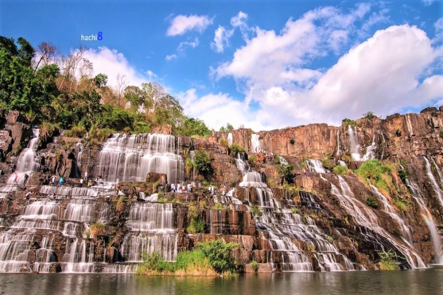 Legend has it that: In the past, the Phu Hoi - Tan Hoi - Tan Thanh district is now governed by a beautiful female K'Ho chief named Kanai. She has the ability to convince animals to help humans, including four large rhinoceros, always obey Kanai orders helping people here to planted corn, sowing rice and battle fight against the enemy, protect the village. As the result, the community life is more and more peaceful. In the spring of that year, on the full moon day of the first lunar month, she gently breathed her last breath because of old. The four rhinoceros walk around her all nights did not leave the owner half step, they sad and didn't eat to death ... in the next morning dawn, people are surprised to see the place she rested coincident appeared a beautiful waterfall. It turns out, the stream is Kanai's hair has turned into blue water, cool, white foam flush, and the green moss terraces from high to low, as the background for the waterfall, Which were the rhino horn pair Fossils - a symbol of the strength of solidarity, eternal attachment between humans and nature.