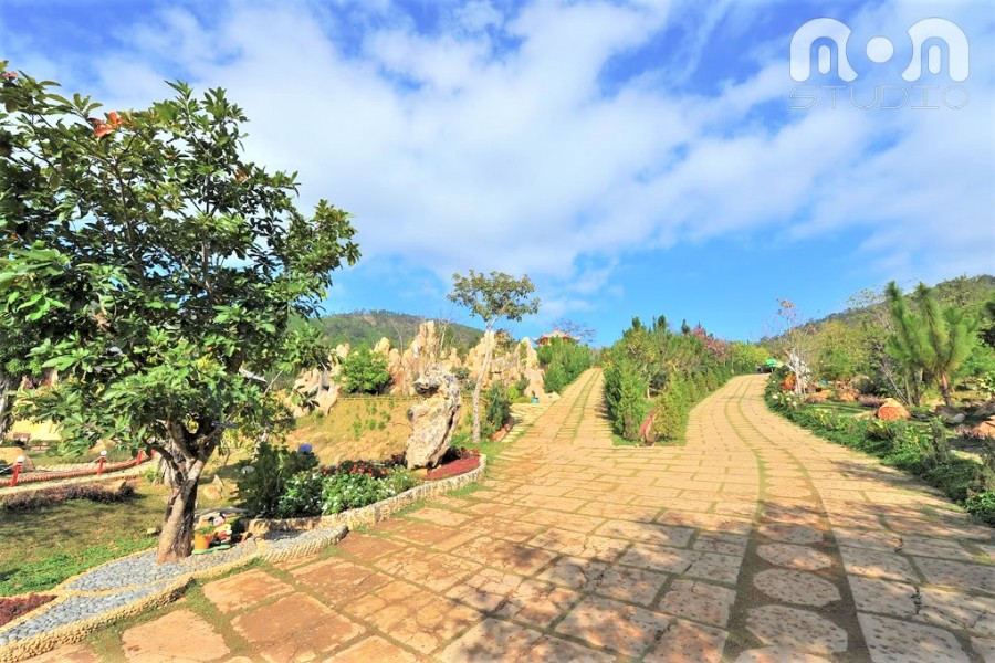 Visitors can enjoy a unique culture on the plateau. enjoying the tea ceremony at the stone garden scene, tables and chairs are made elaborately imported from Japan the cherry blossoms country . or immersed in the hand-embroidered artworks, unique with embroidery techniques embroidered with silk on the silk background, feel the sophistication of Vietnamese cultural identity and silk embroidery techniques in Tran Le Gia Trang ...